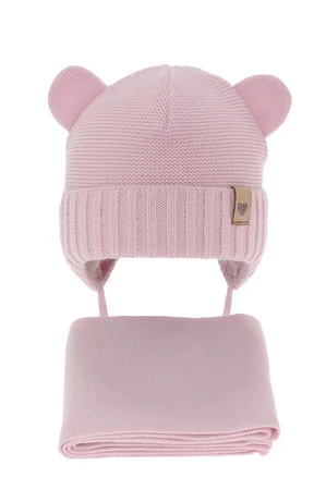 Szalik z kompletu perfekcyjnie otuli szyję dziecka, chroniąc ją przed zimnym powietrzem. Czapka wyposażona w praktyczne troki pozwala na stabilne dopasowanie, co jest szczególnie ważne podczas aktywnych zabaw na świeżym powietrzu. Ozdobne uszka nadają całości dziewczęcego uroku, który z pewnością przypadnie do gustu każdej małej księżniczce.