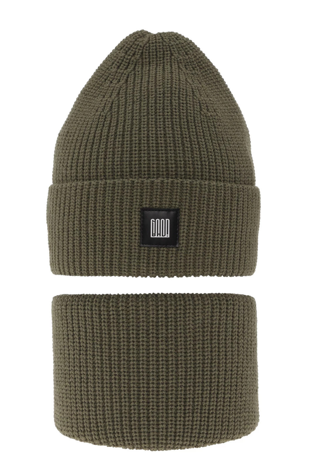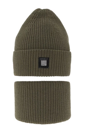 Czapka i komin dla chłopca zimowy komplet, khaki Amadeo