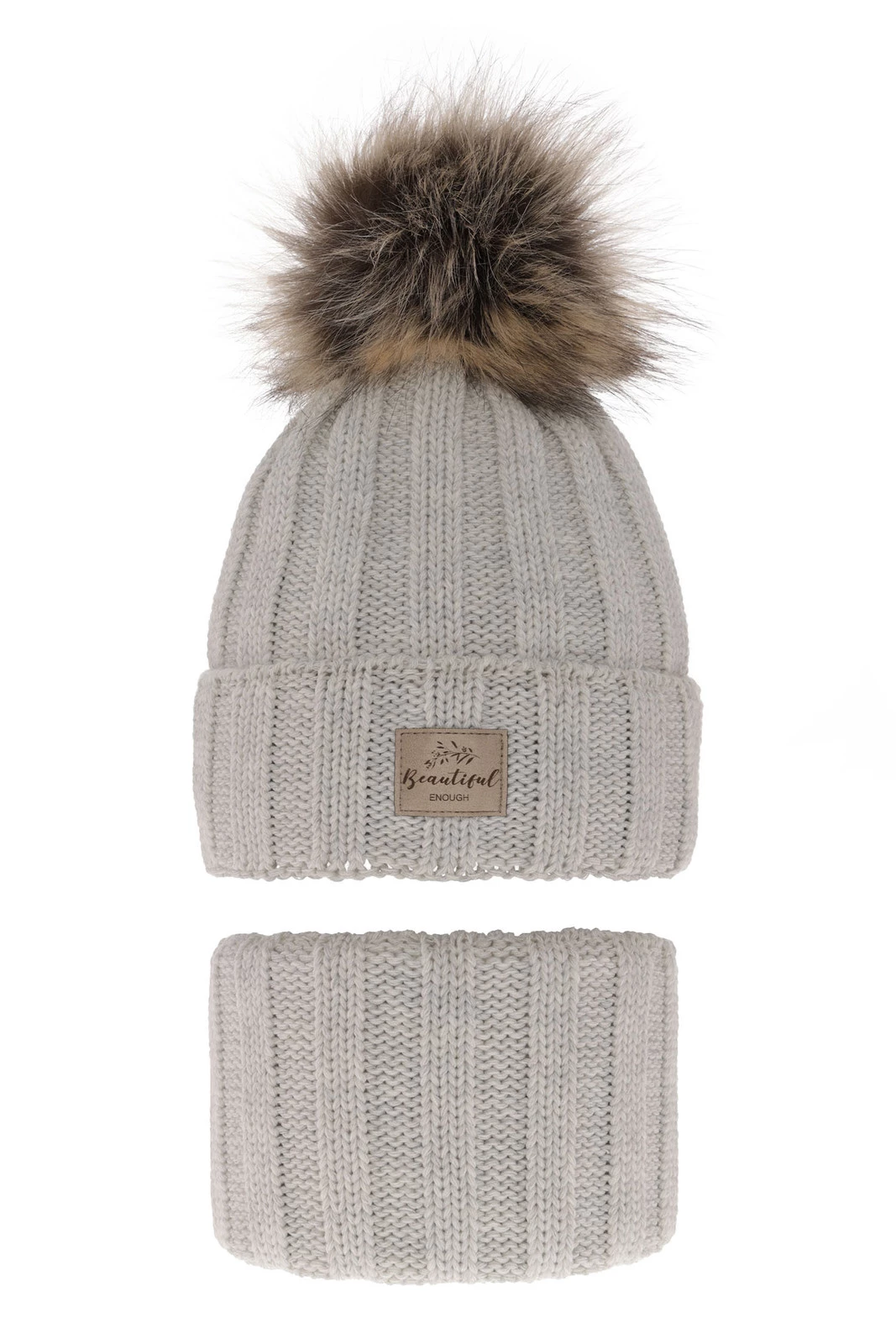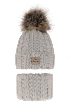 Czapka i komin dla dziewczynki zimowy komplet, szary, z pomponem Kaliope