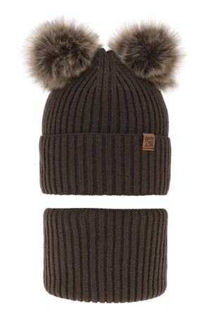 Czapka i komin dla chłopca zimowy komplet, brązowy, z dwoma pomponami Oxford