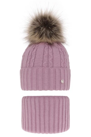 Czapka i komin dla dziewczynki zimowy komplet, fioletowy, z pomponem Felia