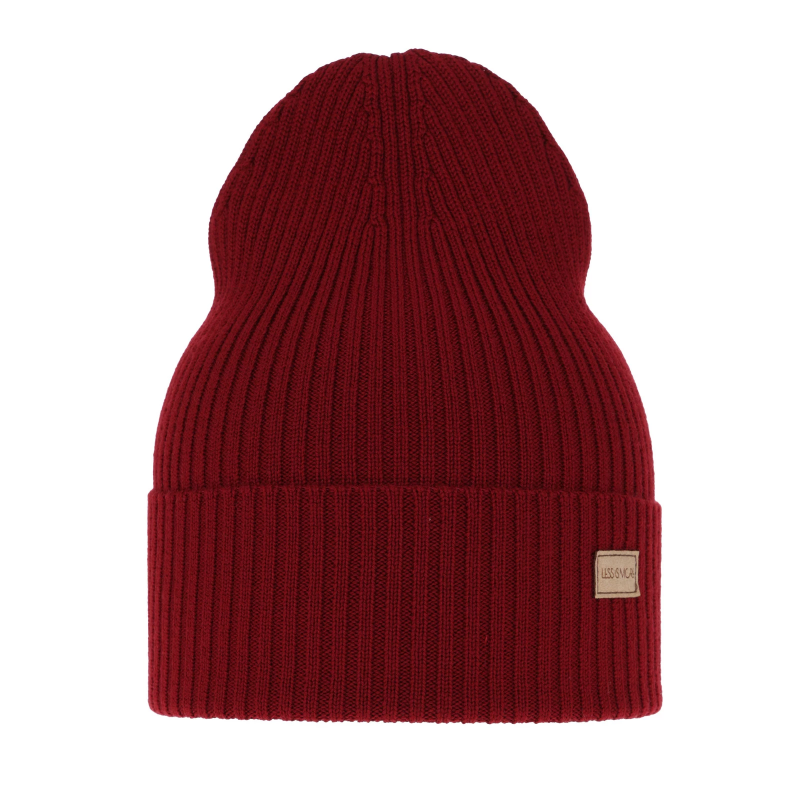 Czapka damska zimowa, wiosenna, bordowa, 100% wełniana merino Sophie
