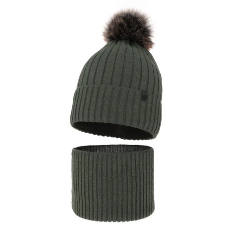 Czapka i komin dla chłopca zimowy komplet, zielony, z pomponem Relax