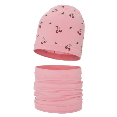 Czapka i komin dla dziewczynki jesienny, wiosenny komplet, różowy, bawełniany Cerise