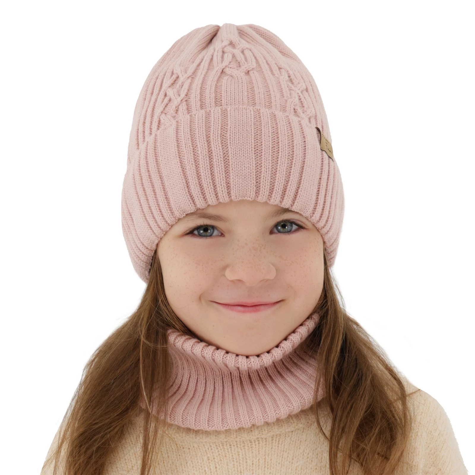 Czapka i komin dla dziewczynki zimowy komplet, beżowy, Rema