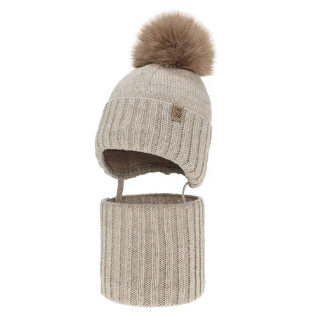 Czapka i komin dla chłopca, zimowy komplet, beżowy, z pomponem Talens