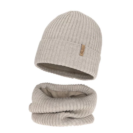 Czapka i komin podszyty bawełną dla dziewczynki zimowy komplet, beżowy, z wełną merino, Odette
