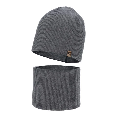 Czapka i komin dla chłopca jesienny, wiosenny komplet, z bawełną, szary Lucer
