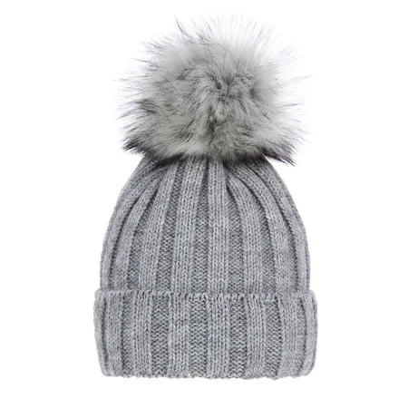 Czapka zimowa damska, szara, z pomponem Mokka