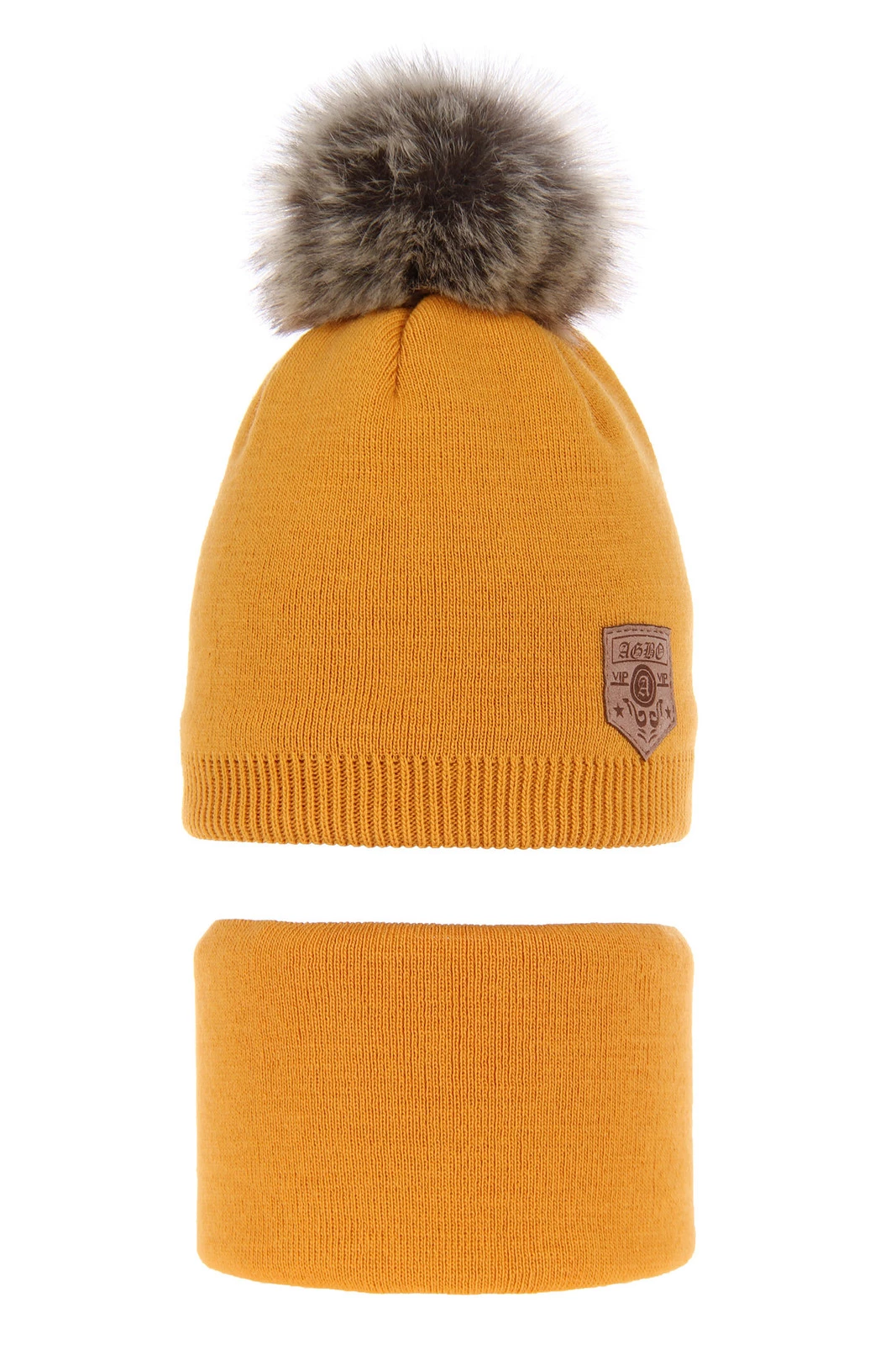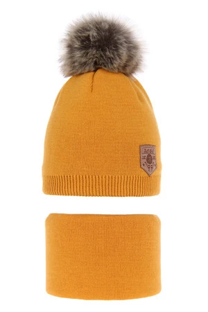 Czapka i komin dla chłopca zimowy komplet, miodowy, z pomponem Apolin