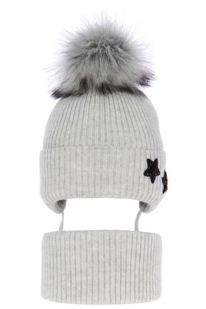 Czapka i komin dla dziewczynki zimowy komplet, szary, wiązany Delicja