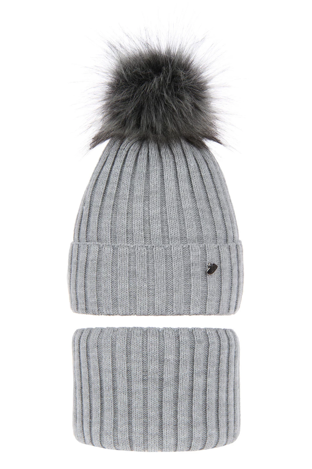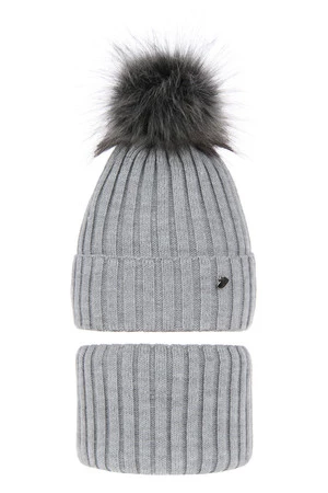 Czapka i komin dla dziewczynki zimowy komplet, szary, z pomponem Wilma