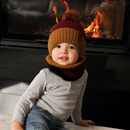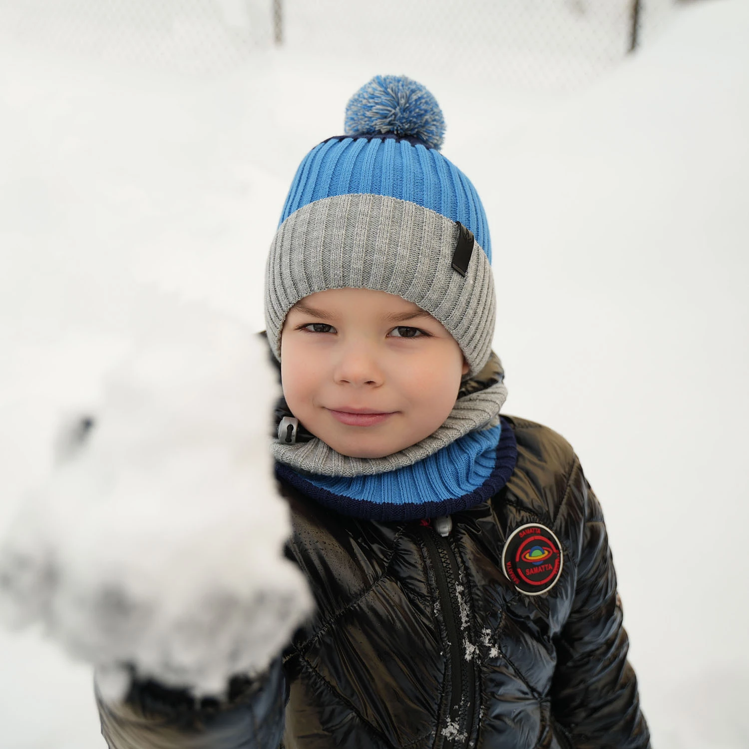 Komplet uzupełnia praktyczny komin, który doskonale chroni wrażliwą szyję dziecka przed chłodem i wiatrem. Jego dwukolorowy design idealnie komponuje się z czapką, tworząc spójny i elegancki zestaw. Komin doskonale przylega do szyi, nie zsuwając się podczas ruchu.