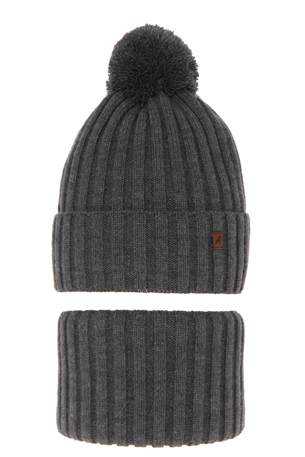 Czapka i komin dla chłopca zimowy komplet, szary, z pomponem Wiliam
