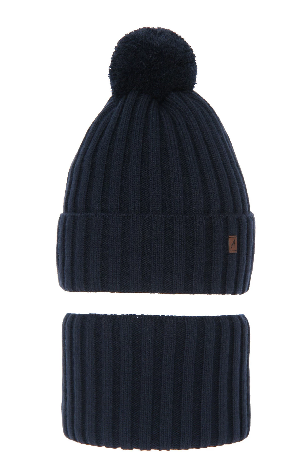 Czapka i komin dla chłopca zimowy komplet, granatowy, z pomponem Wiliam