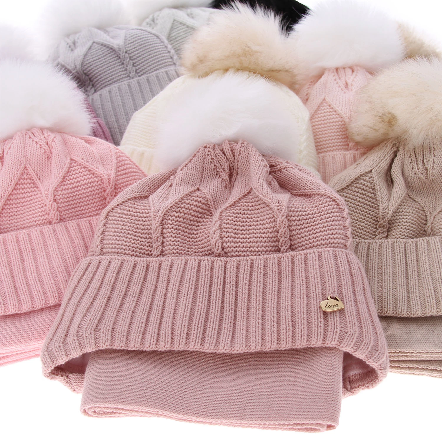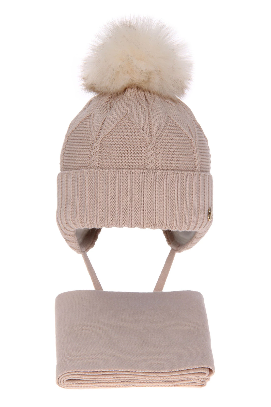 Czapka i szalik dla dziewczynki zimowy komplet, beżowy Altina