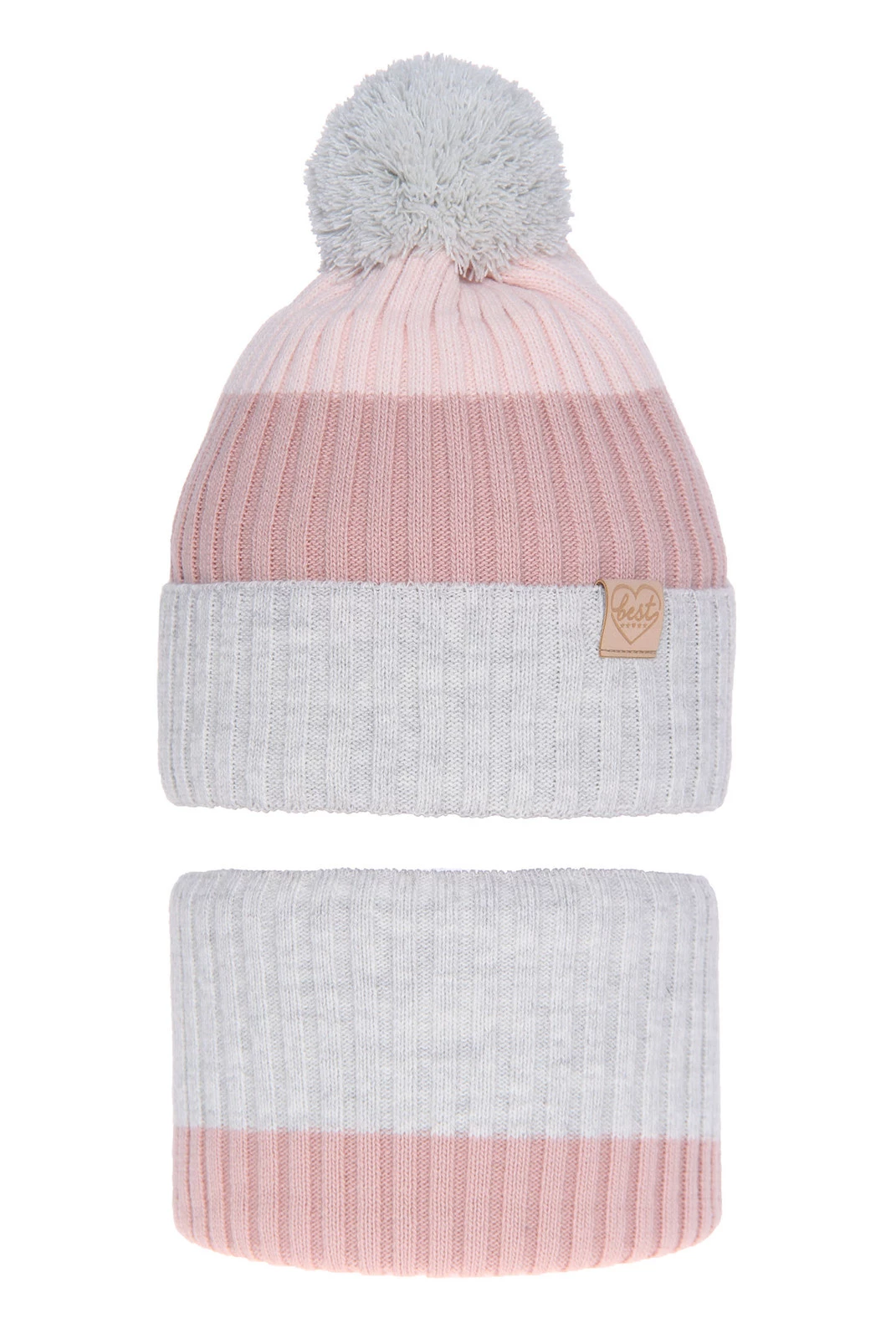 Czapka i komin dla dziewczynki zimowy komplet, szary, z pomponem Indiana
