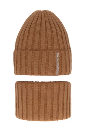 Czapka i komin dla chłopca zimowy komplet, camelowy Livido