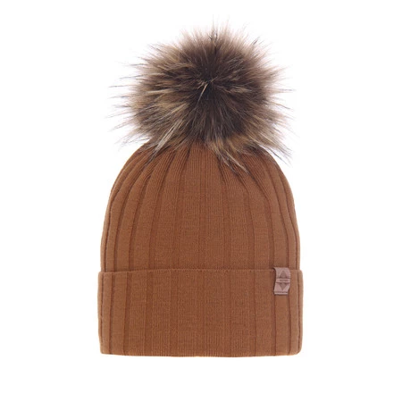 Czapka zimowa damska, brązowa, z pomponem Loara