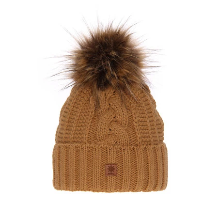 Czapka zimowa damska, camelowa, z pomponem Euforia