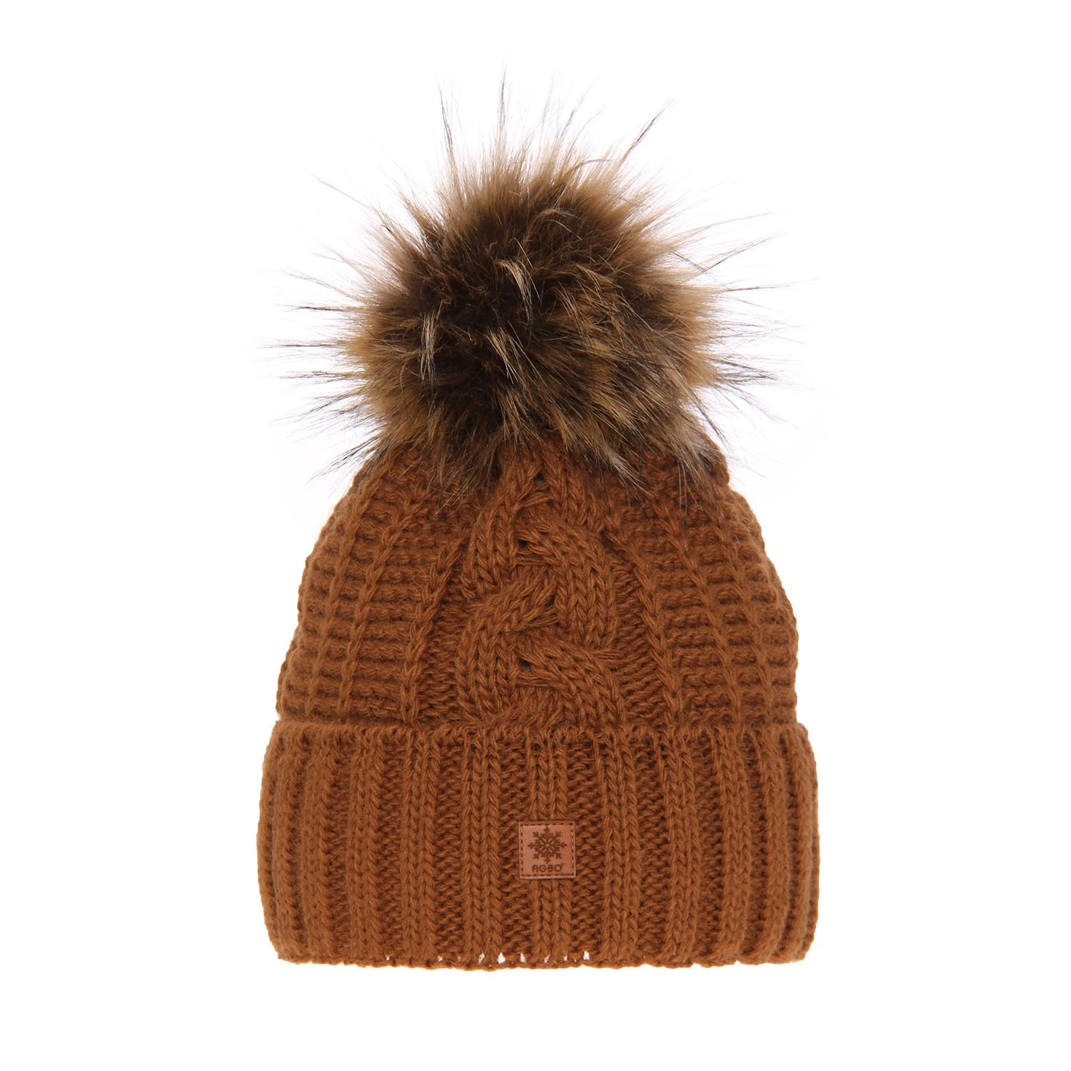 Czapka zimowa damska, brązowa, z pomponem Euforia