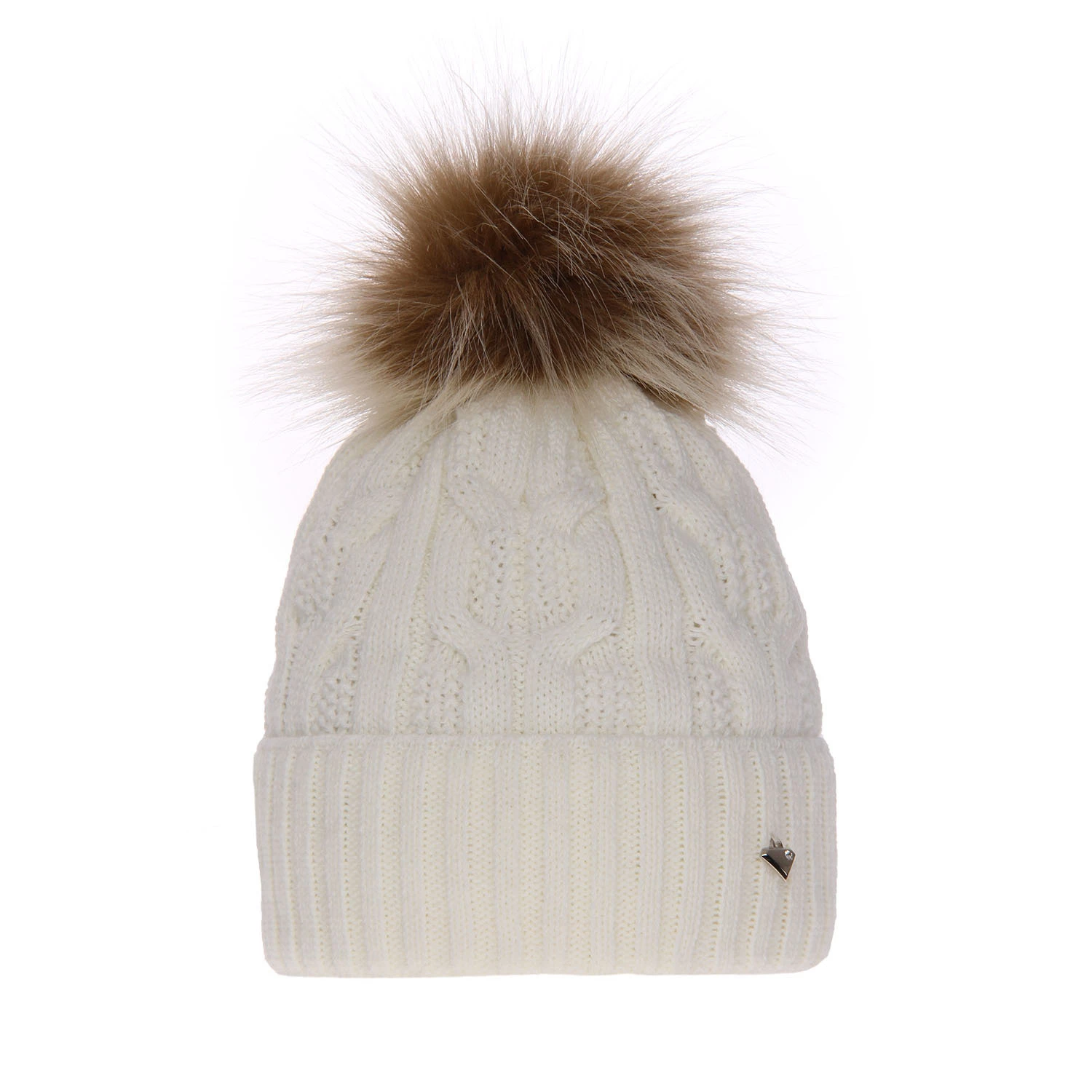 Czapka zimowa damska, kremowa, z pomponem Laona