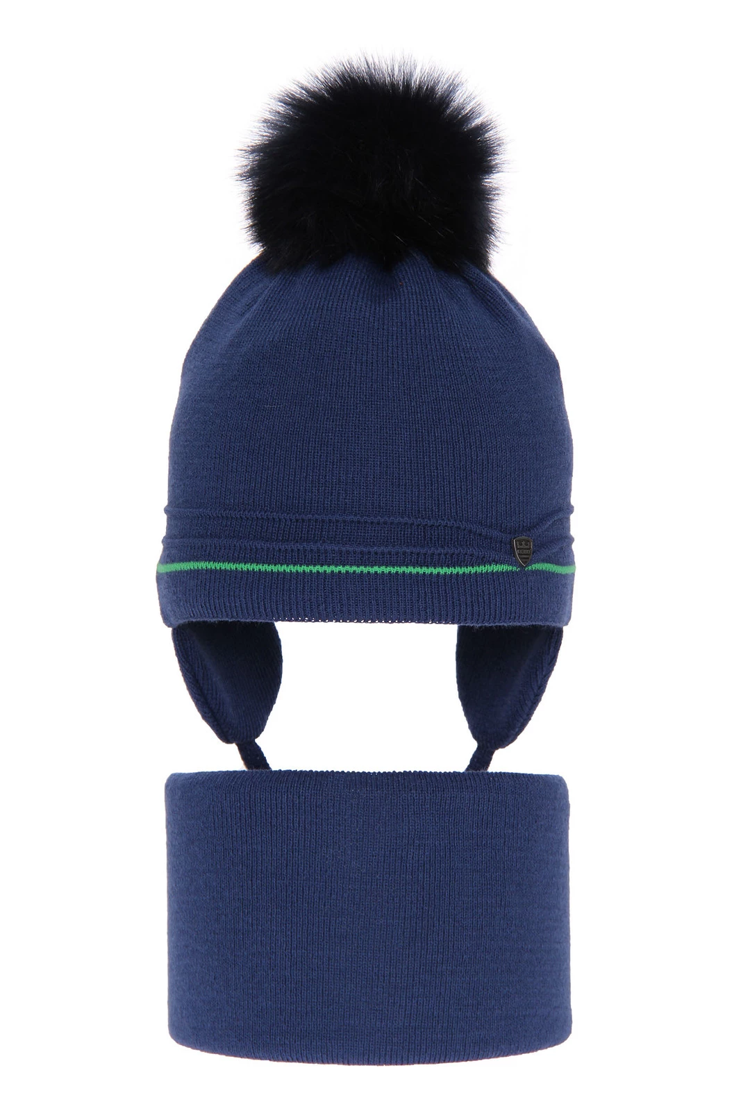 Czapka i komin dla chłopca zimowy komplet, niebieski, wiązany, z pomponem Burgund