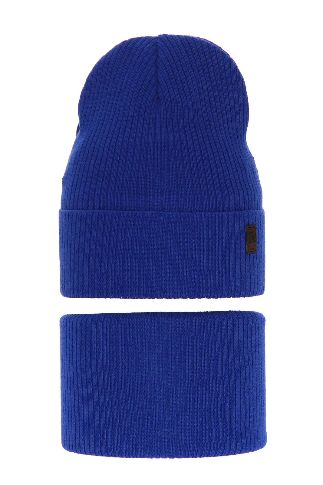 Czapka i komin dla chłopca jesienny, wiosenny komplet, z bawełną, niebieski, Dragon