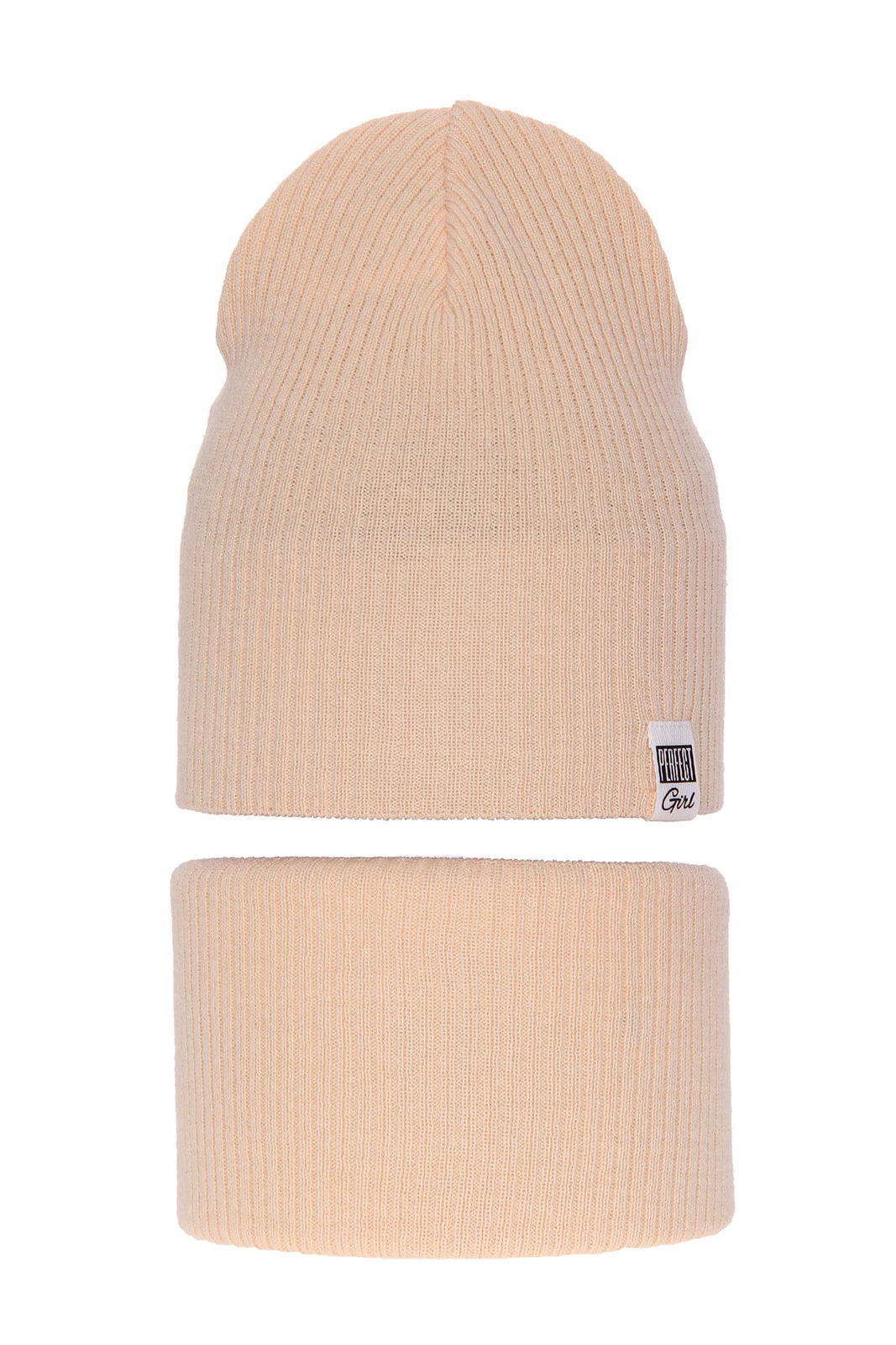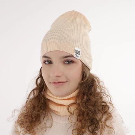 Czapka i komin dla dziewczynki jesienny, wiosenny komplet, z bawełną, morelowy Farinka