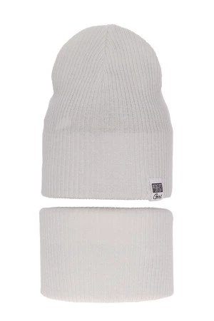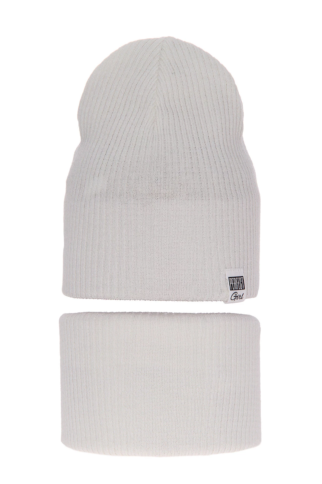 Czapka i komin dla dziewczynki jesienny, wiosenny komplet, kremowy, z bawełną, Farinka