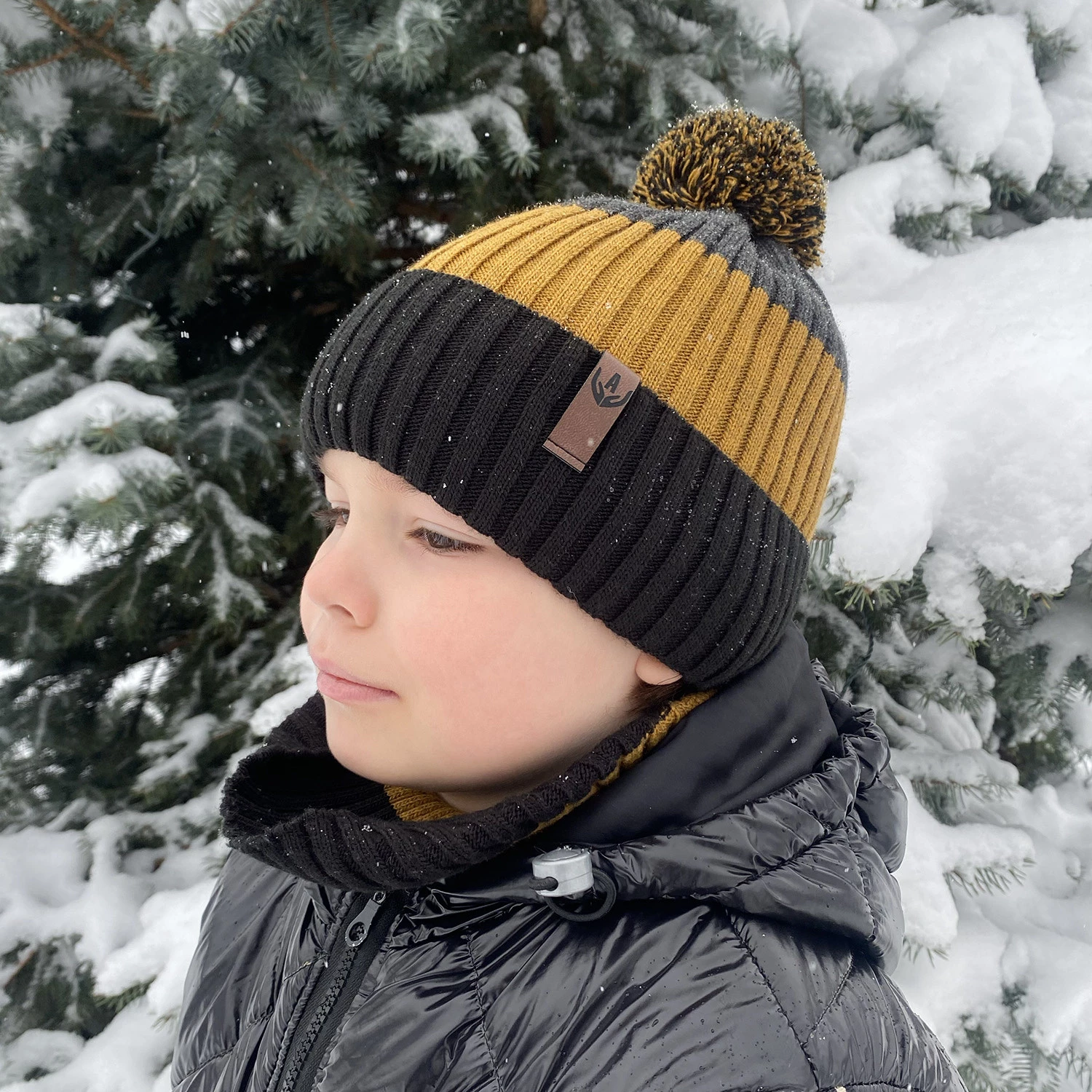Czapka i komin dla chłopca zimowy komplet, czarny Karson