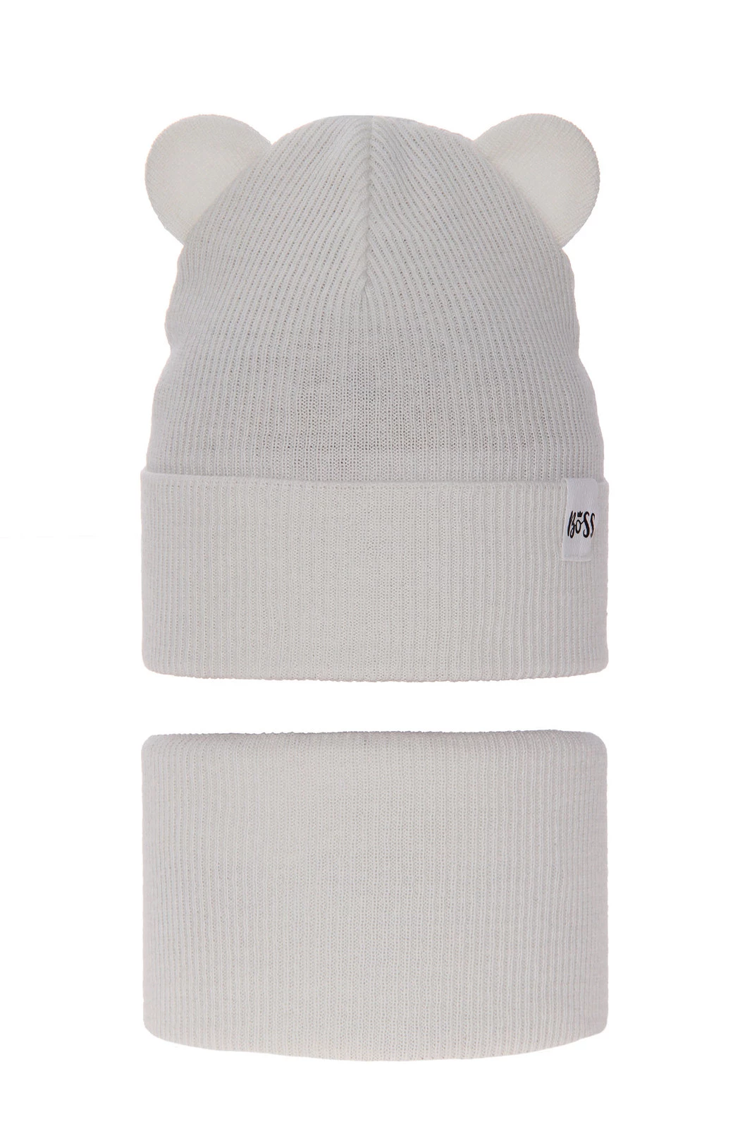 Czapka i komin dla dziewczynki jesienny, wiosenny komplet, kremowy, z bawełną, Kajra