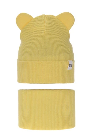 Czapka i komin dla dziewczynki jesienny, wiosenny komplet, z bawełną, żółty Kajra