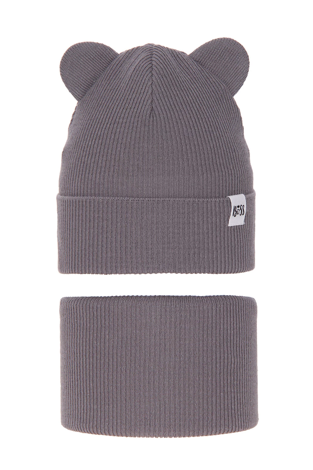 Czapka i komin dla dziewczynki jesienny, wiosenny komplet, z bawełną, szary Kajra