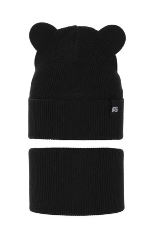 Czapka i komin dla chłopca jesienny, wiosenny komplet, z bawełną, czarny Grajan