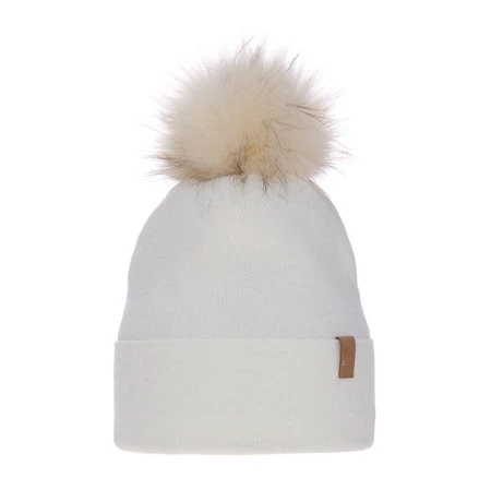 Czapka zimowa damska, kremowa, z pomponem Kalia