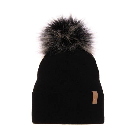 Czapka zimowa damska, czarna, z pomponem, Kalia