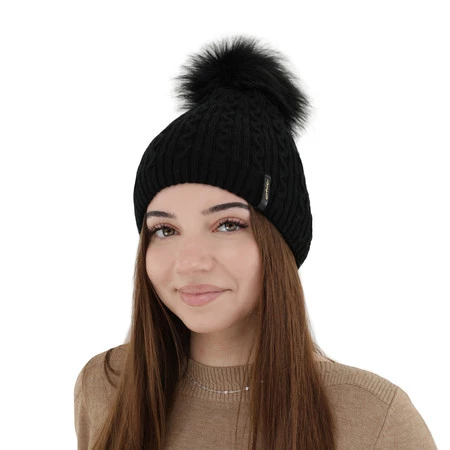 Czapka zimowa damska, czarna, z pomponem, Xena