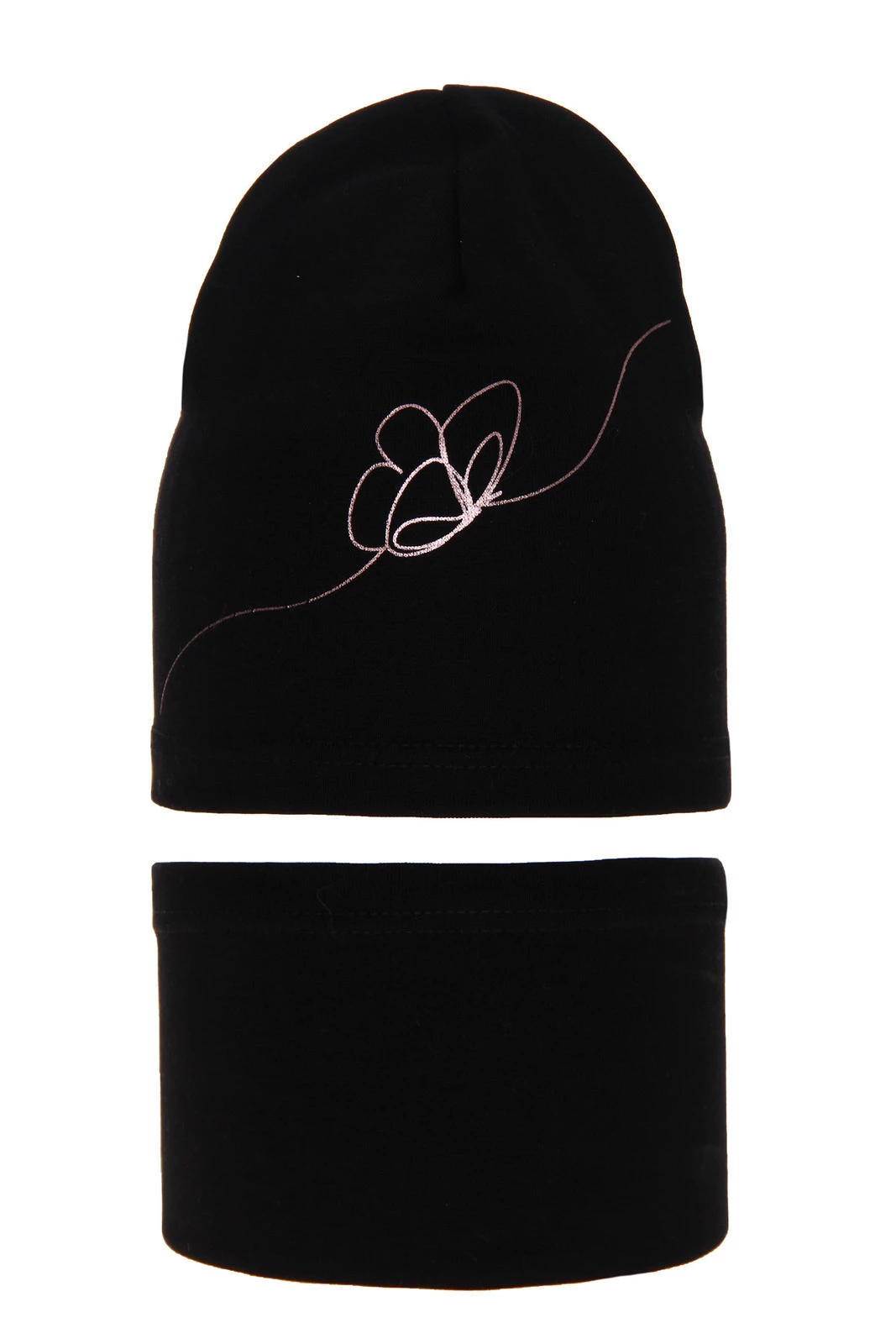 Czapka i komin dla dziewczynki jesienny, wiosenny komplet, czarny, bawełniany Jula