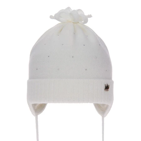 Czapka jesienna, wiosenna dla dziewczynki, kremowa, wiązana Oliwka