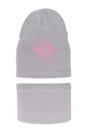 Czapka i komin dla dziewczynki jesienny, wiosenny komplet, szary, bawełniany Esmeralda