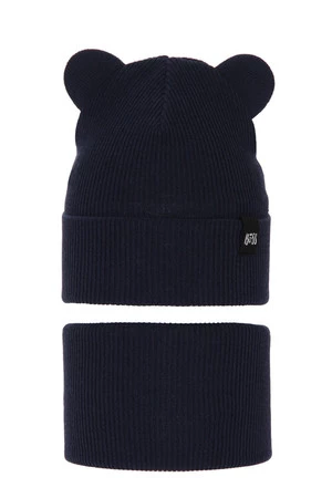 Czapka i komin dla chłopca jesienny, wiosenny komplet, z bawełną, granatowy Grajan