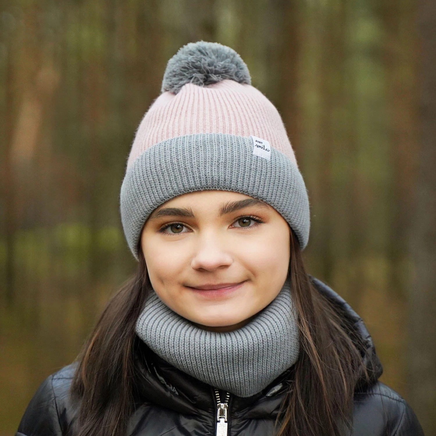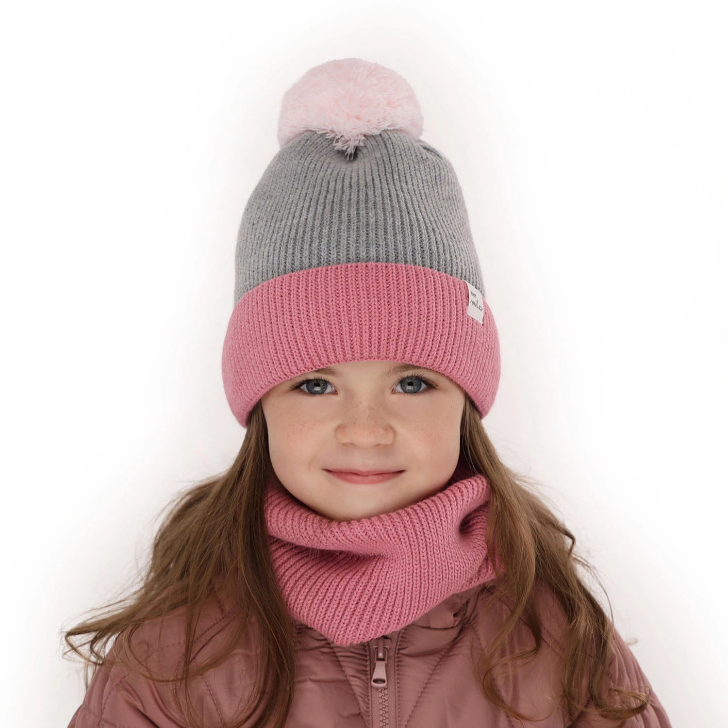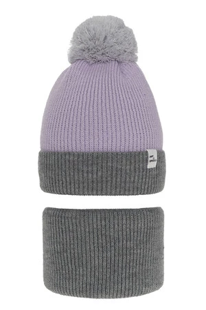 Czapka i komin dla dziewczynki zimowy komplet, szary, z pomponem Rosalin