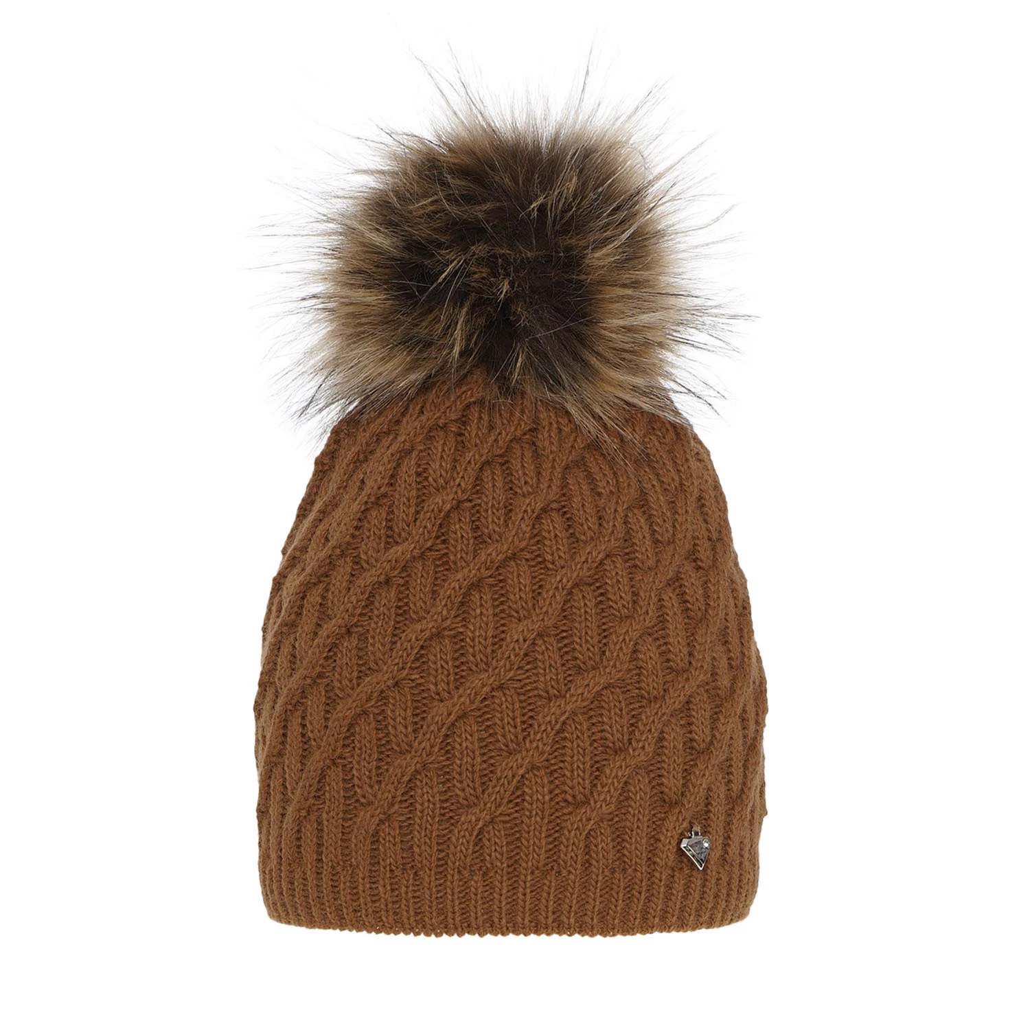 Czapka zimowa damska, camel, z pomponem Kaskada