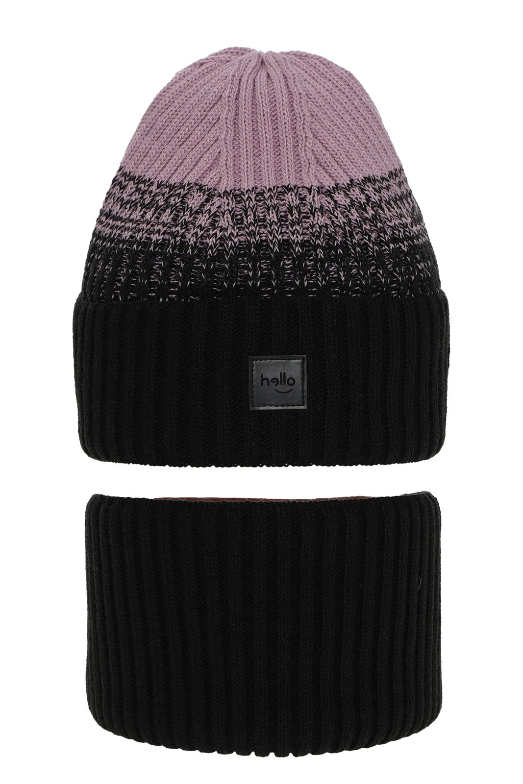 Czapka i komin dla dziewczynki zimowy komplet, czarny, Tasha