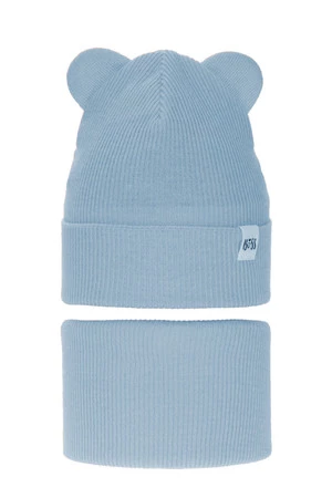 Czapka i komin dla dziewczynki jesienny, wiosenny komplet, z bawełną, błękitny, Kajra