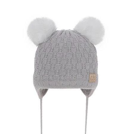 Czapka zimowa dla dziewczynki, szara, z pomponem Emila