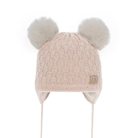 Czapka zimowa dla dziewczynki, beżowa, z pomponem Emila