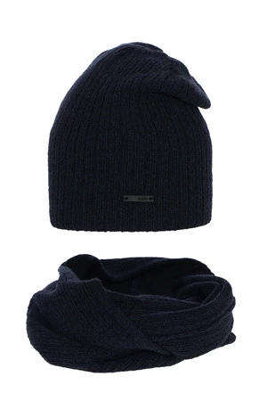 Czapka i komin dla chłopca zimowy komplet, granatowy Elmer