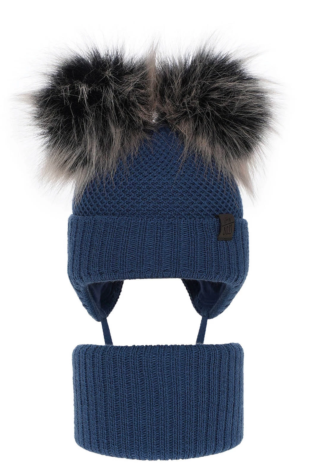 Czapka i komin dla chłopca zimowy komplet, granatowy, z dwoma pomponami Randel
